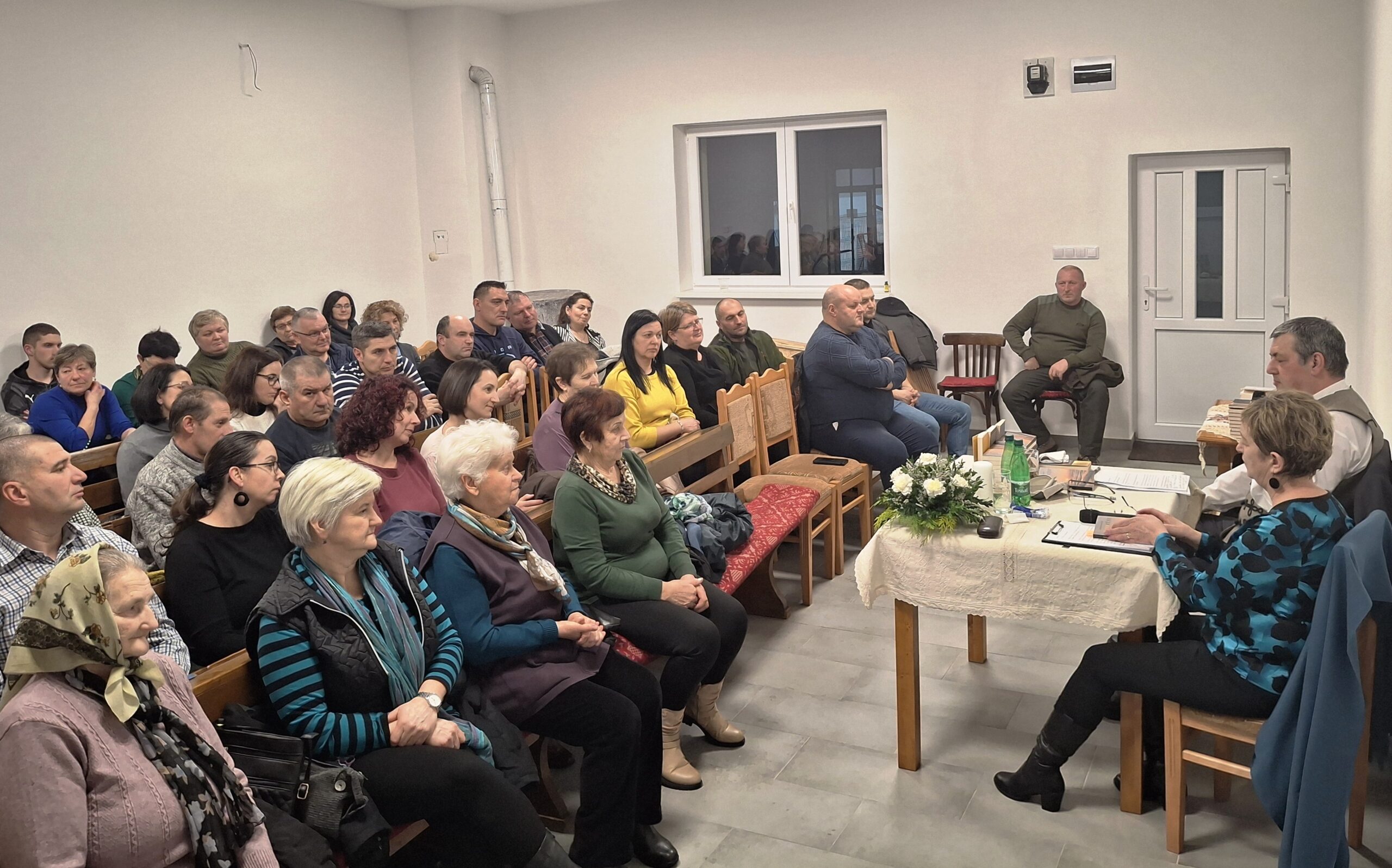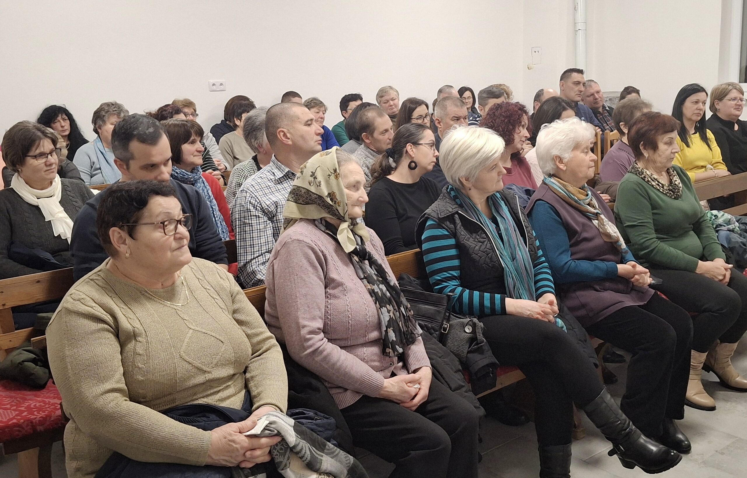 Kifejezetten jót tett a szenttamásiaknak a csütörtök este, január 29-én tartott könyvbemutató. Habár úgy tűnt,, egymásra csúsznak a kulturális programok – lévén, hogy a hagyományos, kétévenkénti számadó táncbemutató próbája is épp akkor zajlott, mintegy száz aktív táncossal, a kultúrházban – , mégis közel 70 helyi lakos, hívő és érdeklődő volt kíváncsi Péter Páter Aranyfüst c. legújabb könyvének bemutatójára.. Az felújított és meleg hittanterem percek alatt megtelt és a jelenlévők kíváncsian hallgatták Ádám Erika igazgatónő és Sebestyén Péter plébános beszélgetését.